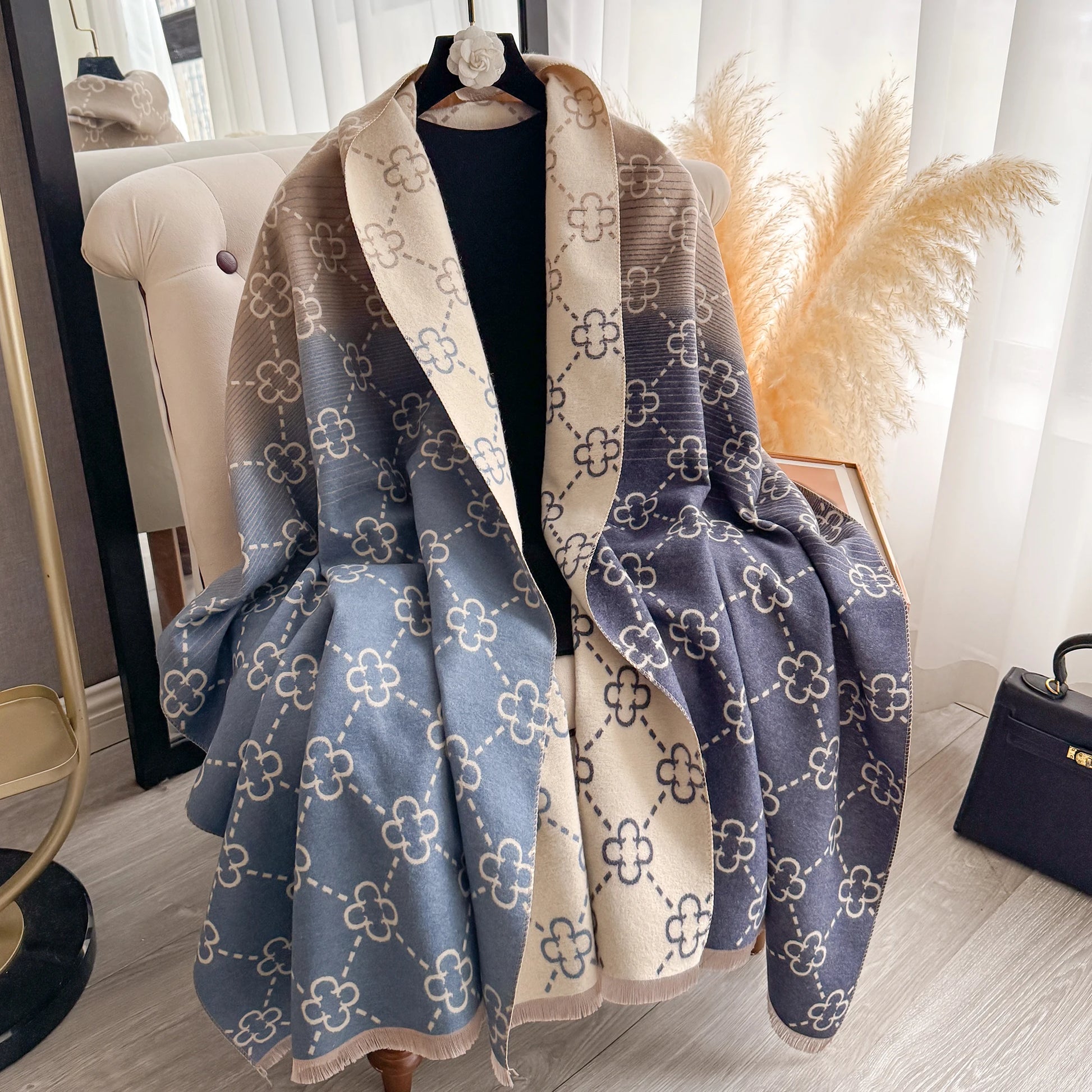 Wear it wrapped as a pashmina, draped as a shawl, or styled as a classic scarf — its versatility makes it your go-to layer all year round. Soft with a subtle texture and a fresh, feminine spirit, it adds a luxurious touch to spring breezes, crisp autumn days, winter chills, and even cool summer evenings.