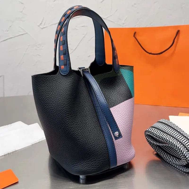 Aurelia Small Leather Bucket Bag / Navy & Green