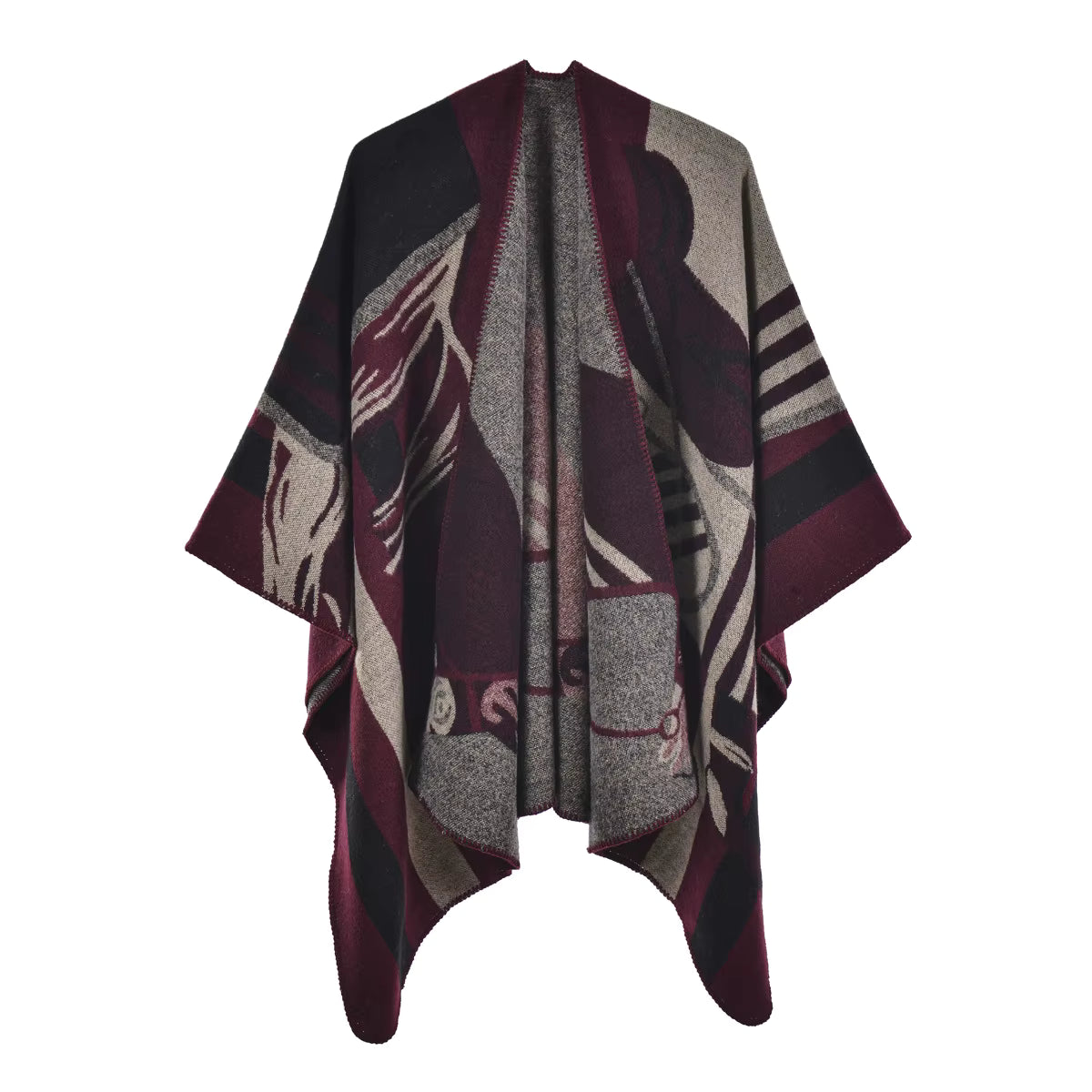Introducing the poncho, the latest must-have accessory that is sure to make a statement wherever you go. Crafted with the finest materials and attention to detail, the poncho features a stunning horse motif that adds a touch of elegance and sophistication to any outfit. Designed for the modern individual who values both style and functionality, the poncho is the perfect blend of fashion and practicality. Whether you're heading to a music festival, a casual brunch with friends, or simply want to elevate your everyday look, the poncho is the ultimate wardrobe essential.