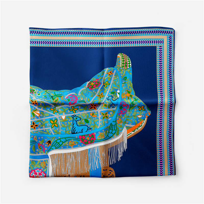 Scarf in silk twill with hand-rolled edges specially designed for horse lovers. This silk scarf is an infinite source of creativity and accessory that complements any outfit. It can be worn many ways - around your neck, as a top, at the waist or as a headscarf!