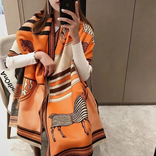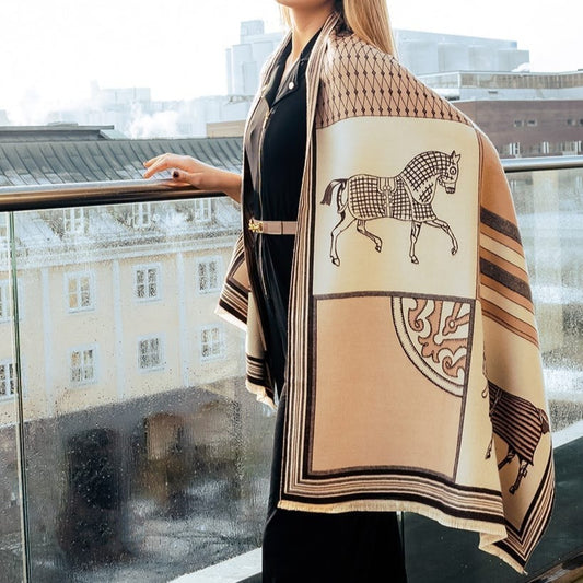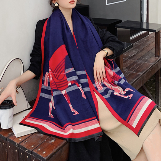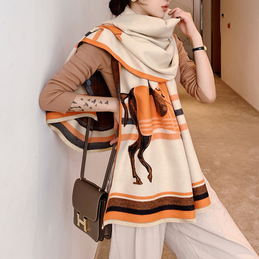 Scarf in silk twill with hand-rolled edges specially designed for horse lovers. This silk scarf is an infinite source of creativity and accessory that complements any outfit. It can be worn many ways - around your neck, as a top, at the waist or as a headscarf!