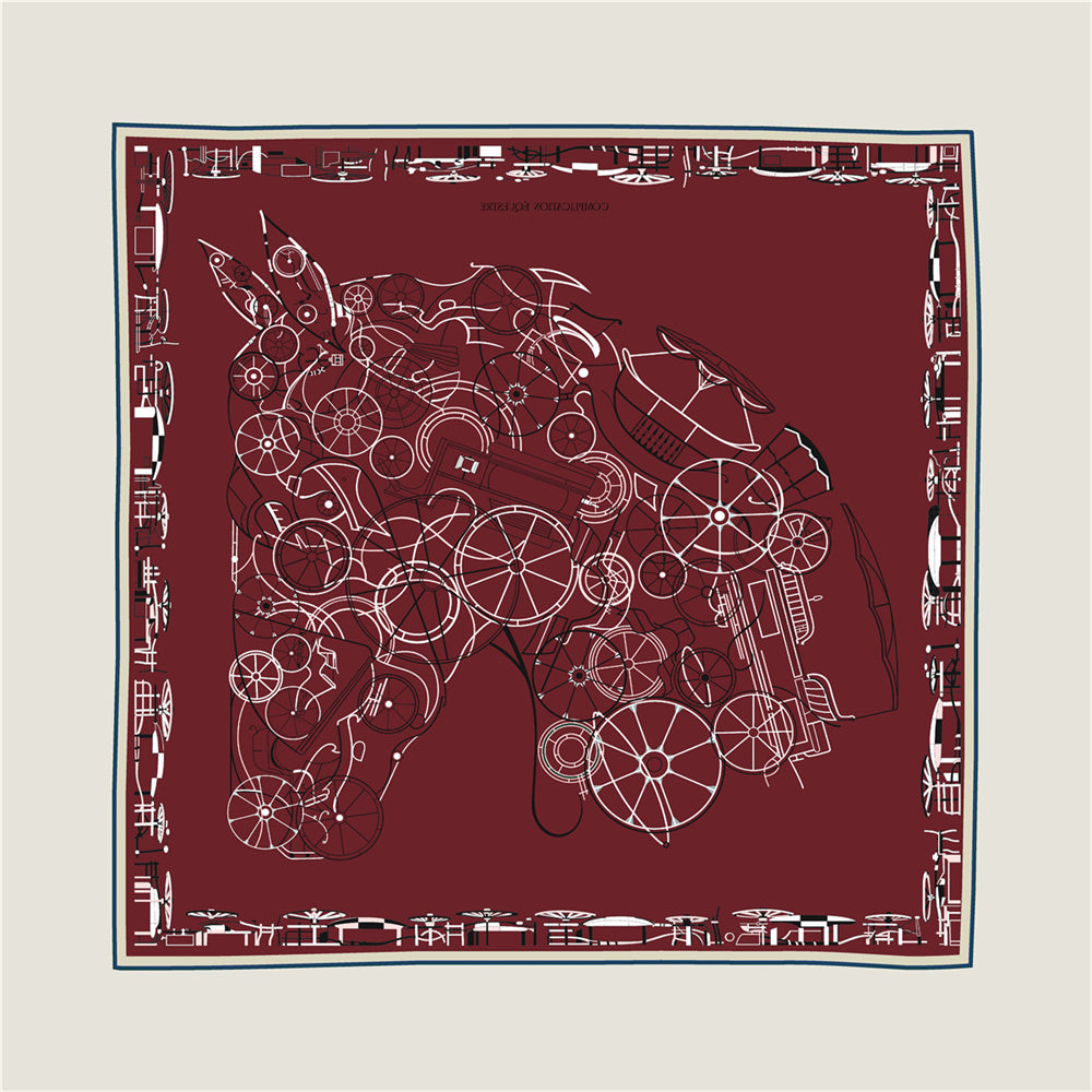 Double print scarf in silk twill with hand-rolled edges specially designed for horse lovers. This silk scarf is an infinite source of creativity and accessory that complements any outfit. It can be worn many ways - around your neck, as a top, at the waist or as a headscarf!