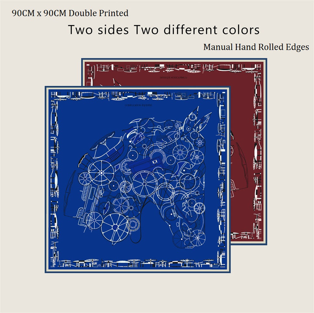 Horse Head Blue & Brown Double Print Scarf / 90cm