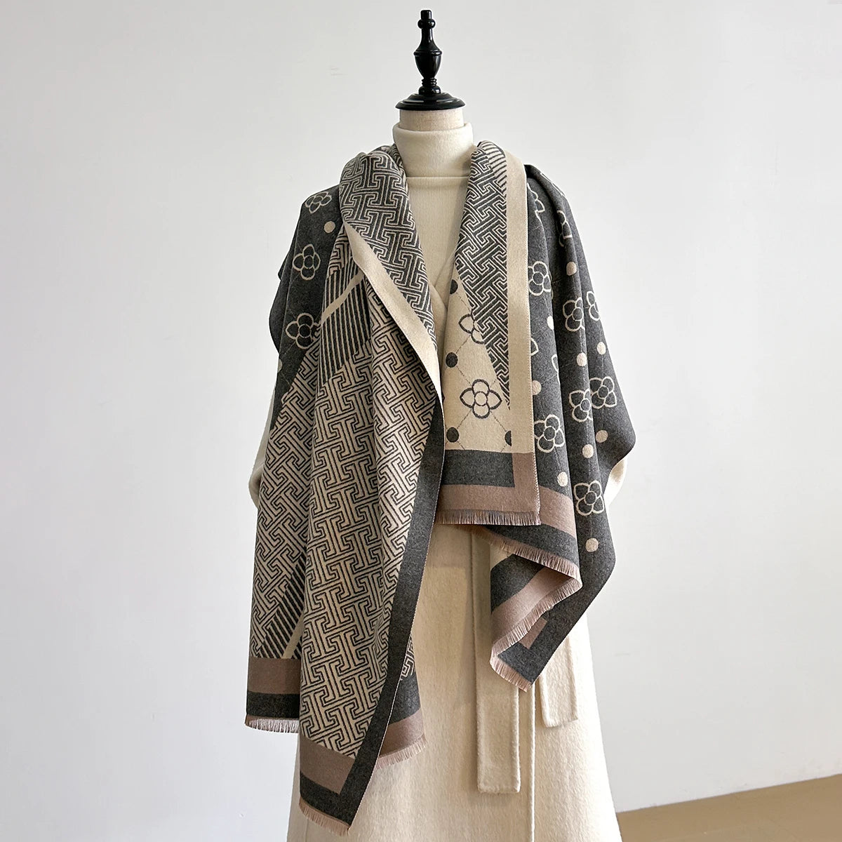 Wear it wrapped as a pashmina, draped as a shawl, or styled as a classic scarf — its versatility makes it your go-to layer all year round. Soft with a subtle texture and a fresh, feminine spirit, it adds a luxurious touch to spring breezes, crisp autumn days, winter chills, and even cool summer evenings.