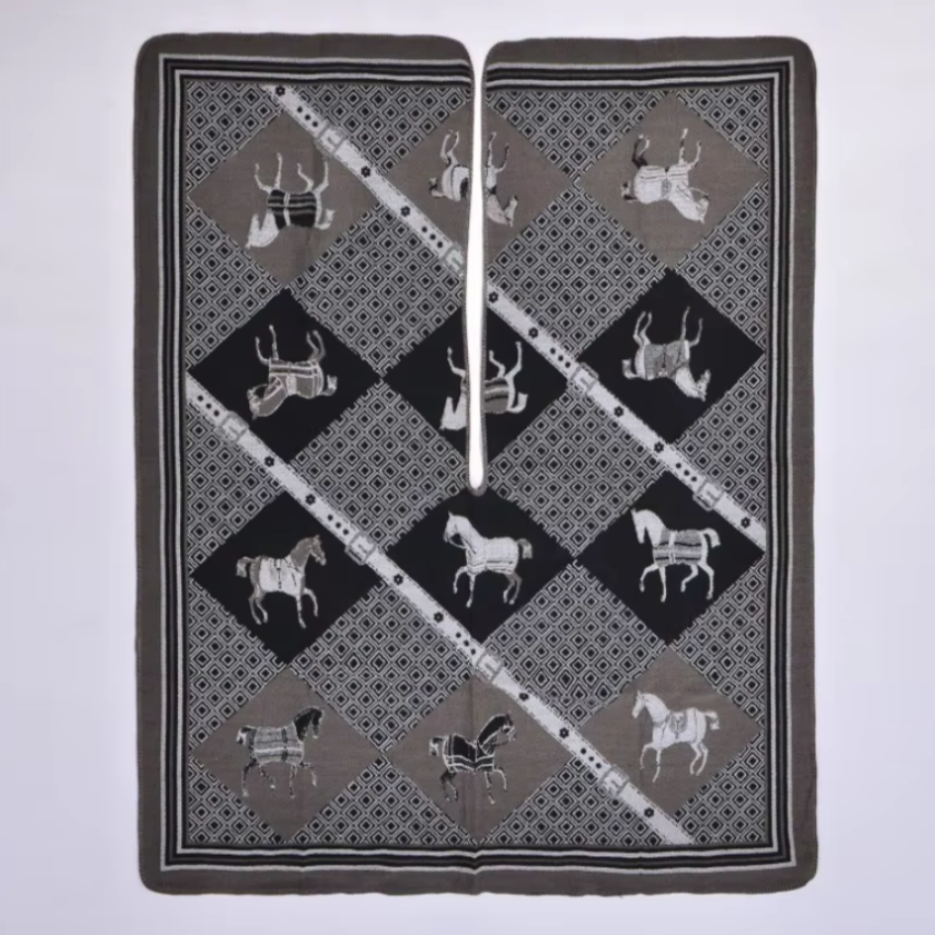 Introducing the poncho, the latest must-have accessory that is sure to make a statement wherever you go. Crafted with the finest materials and attention to detail, the poncho features a stunning horse motif that adds a touch of elegance and sophistication to any outfit. Designed for the modern individual who values both style and functionality, the poncho is the perfect blend of fashion and practicality. Whether you're heading to a music festival, a casual brunch with friends, or simply want to elevate your everyday look, the poncho is the ultimate wardrobe essential.