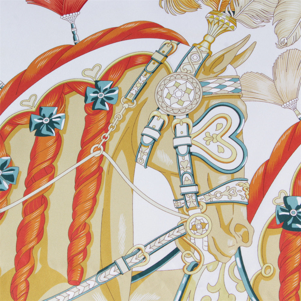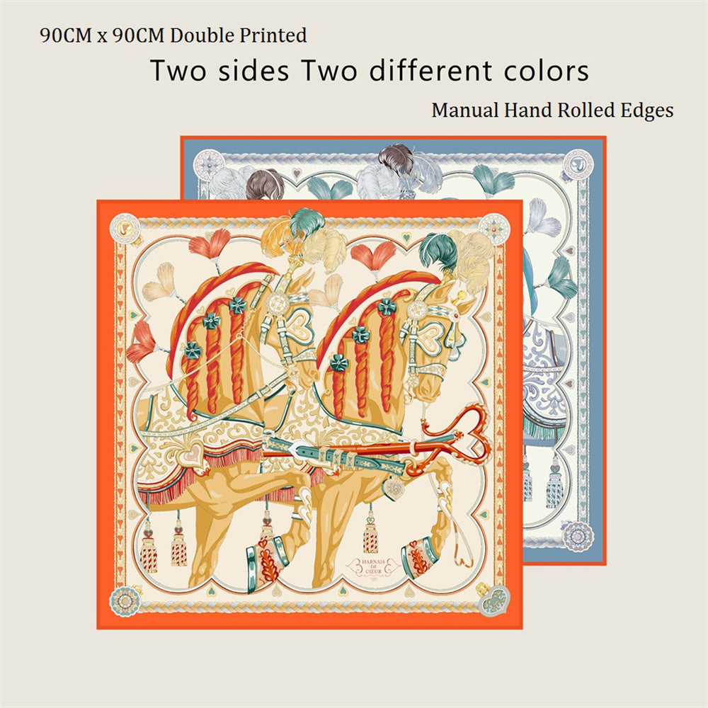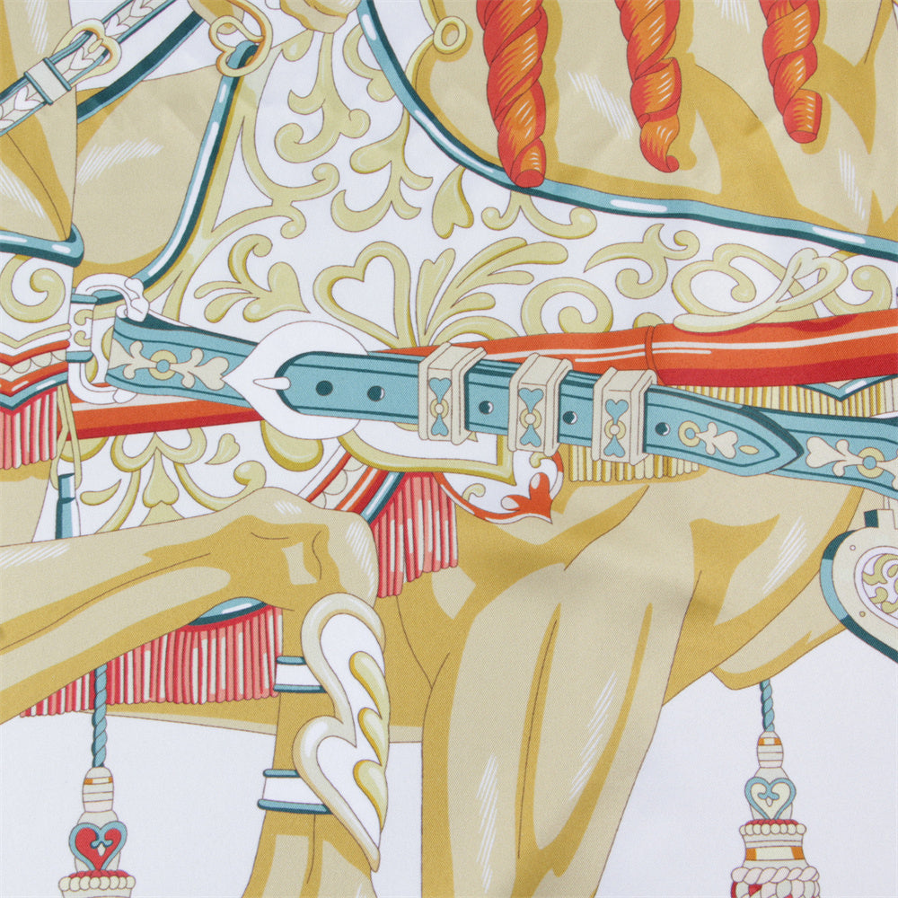 Double print scarf in silk twill with hand-rolled edges specially designed for horse lovers. This silk scarf is an infinite source of creativity and accessory that complements any outfit. It can be worn many ways - around your neck, as a top, at the waist or as a headscarf!
