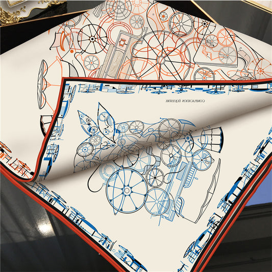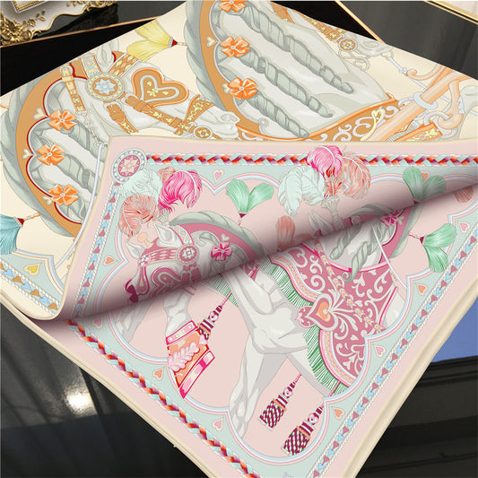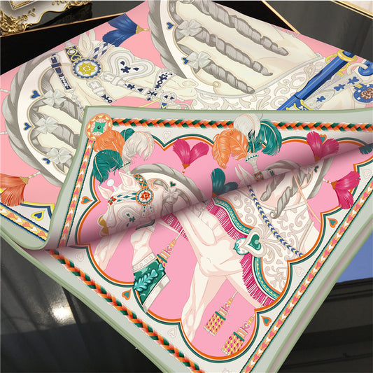 Horse Head Beige & Blue Double Print Scarf / 90cm