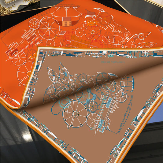 Horse Head Orange & Coffee Double Print Scarf / 90cm